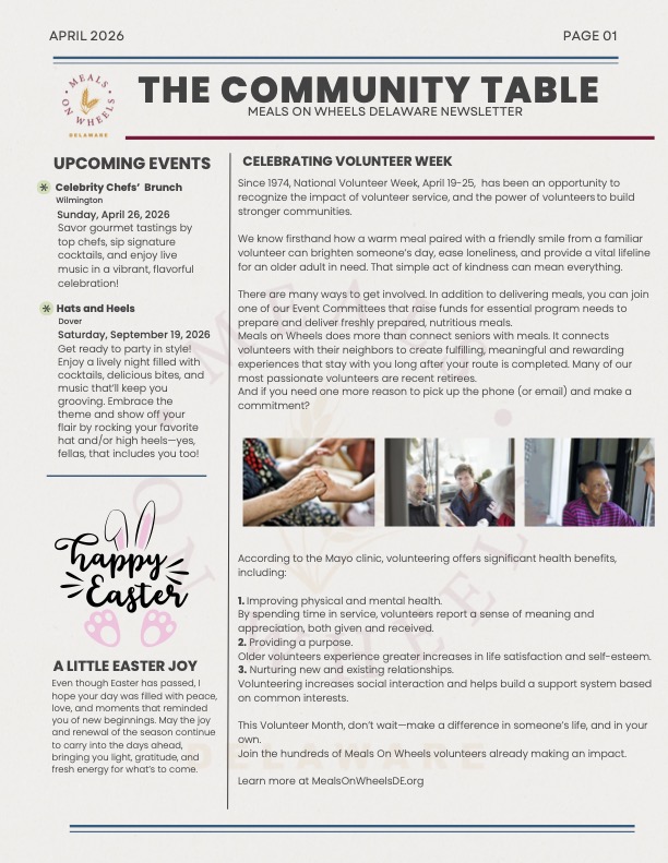 News Meals on Wheels Delaware News April 2026 March 2026 February 2026 January 2026 For archived News, click here.